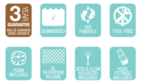 2 capas una encima de la otra (ECOPOND 3) 3 capas una encima de la otra (ECOPOND 4) con 3 niveles de filtración (mecánica y biológica) |