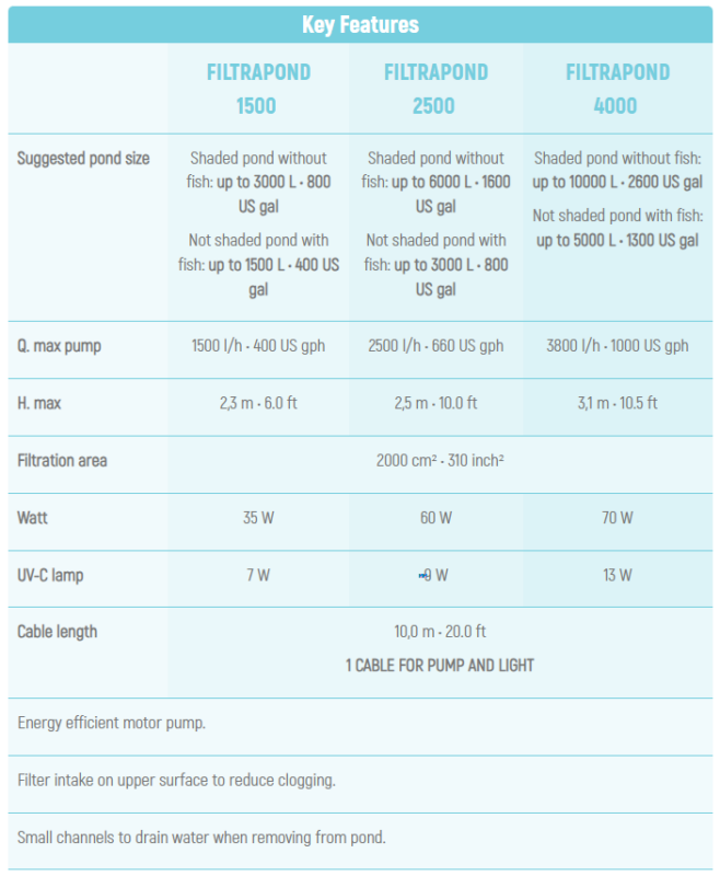 Disponible en tres modelos: FiltraPond 1500 | FiltraPond 2500 | FiltraPond 4000