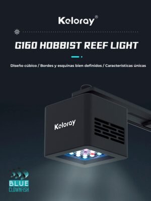 El Foco G160 Reef Light está diseñado para ofrecer un equilibrio perfecto entre potencia, control y facilidad de uso. Su formato compacto y diseño cúbico lo convierten en una opción eficiente y estética para cualquier acuario marino.