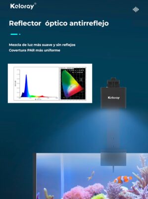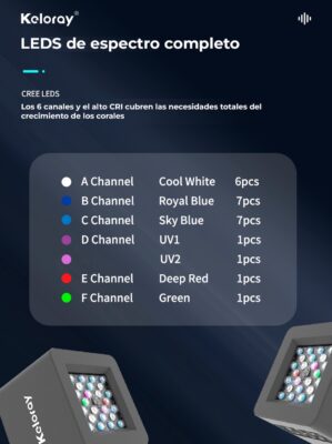 El sistema LED incorpora 6 canales ajustables, lo que permite adaptar la iluminación a diferentes tipos de corales: