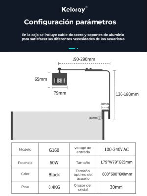 El Foco G160 permite crear curvas de լուս diarias personalizadas, ajustar horarios y simular condiciones naturales dentro del acuario.