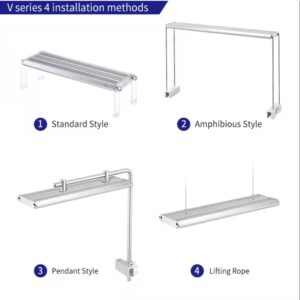 La WEEK AQUA Serie V 25W es ideal para acuarios de 30 a 45 cm de agua dulce, ofreciendo una iluminación WRGB+W que favorece el crecimiento de plantas acuáticas y realza la intensidad de sus colores.