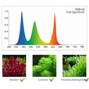 - Espectro completo WRGB+W: Mejora la fotosíntesis y estimula la pigmentación natural.