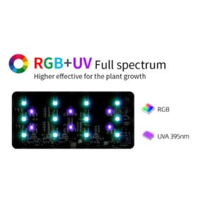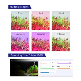 Integra un sistema de iluminación RGB + UV Full Spectrum, optimizado para el crecimiento de plantas acuáticas y la mejora cromática del paisaje.